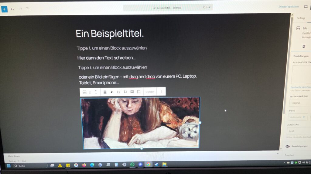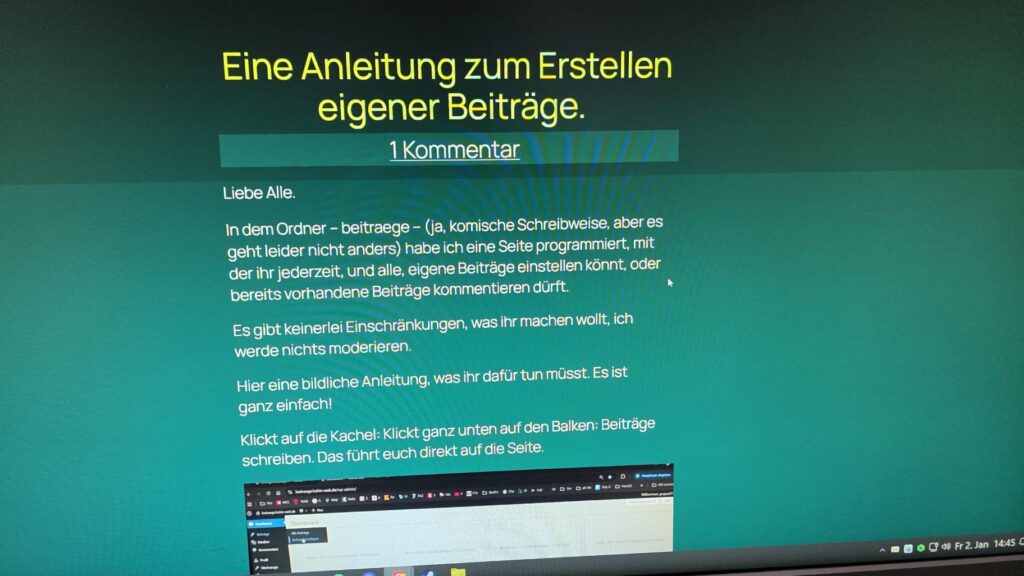 Ich beginne wieder und hoffe auf viele unterschiedliche Blickwinkel.